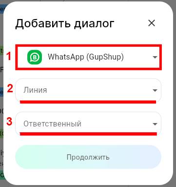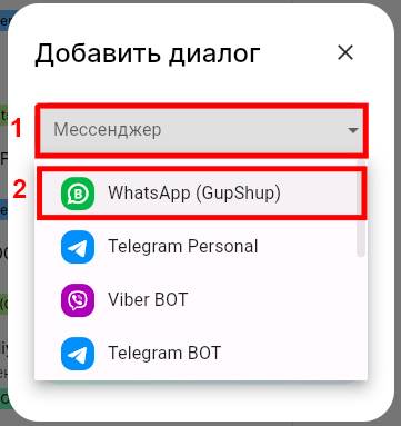 2. В строке выбора мессенджера выберите WhatsApp (GupShup).