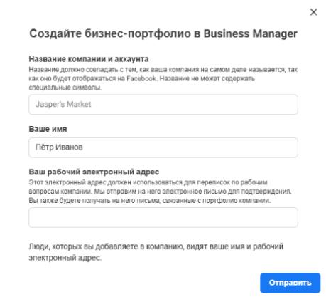 Шаг 2. Создайте компанию в Facebook Business Manager*