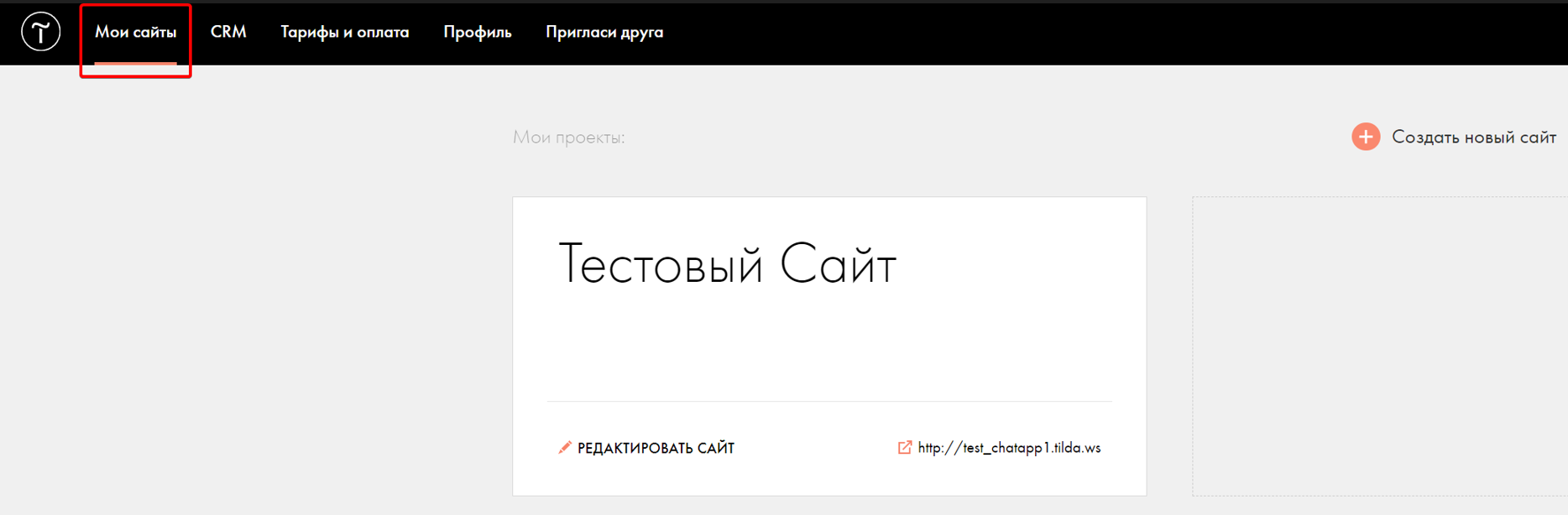 2. На вкладке «Мои сайты» создайте сайт или перейдите в существующий.