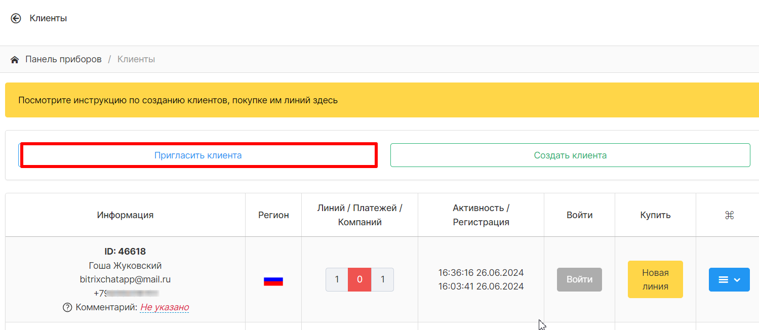 После принятия приглашения клиент появится в списке ваших клиентов.