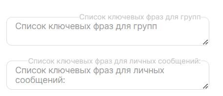 7. Добавьте ключевые слова в поля «Список ключевых фраз для групп» и «Список ключевых фраз для личных сообщений».