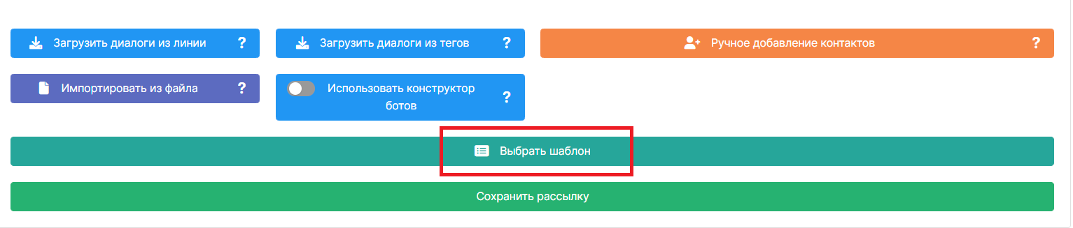 3. Чтобы добавить готовый шаблон WABA в рассылку, кликните на кнопку «Выбрать шаблон» внизу страницы: