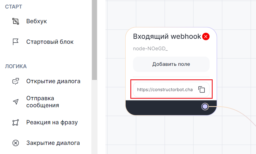 1. Перейдите в Конструктор ботов и выберите сценарий с шаблонами WABA. В нём должен быть блок «Входящий webhook». Подробнее о создании таких сценариев — в статье Как добавить шаблон WhatsApp Business API в Конструктор ботов.