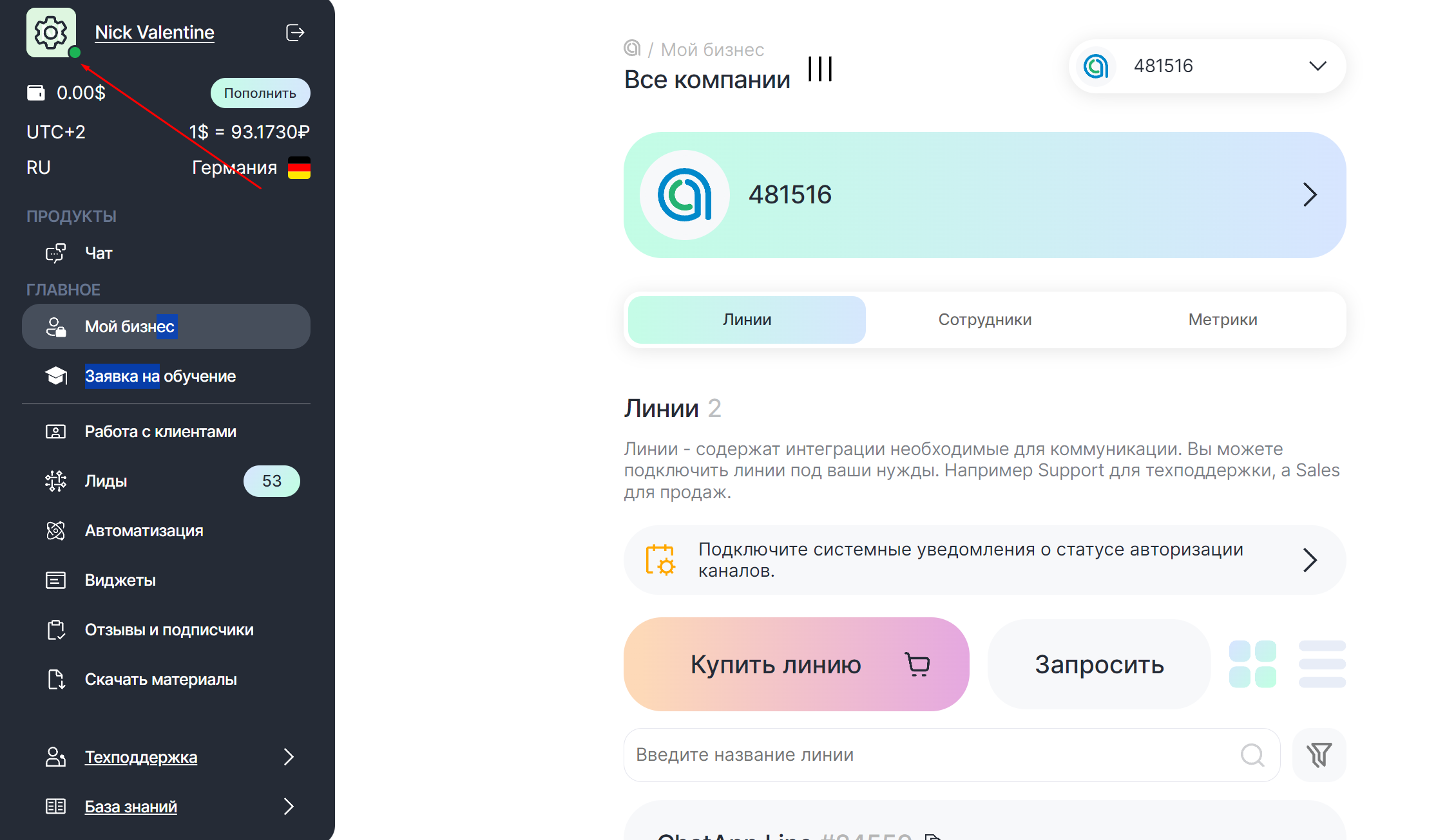 1) Перейдите в настройки профиля в личном кабинете ChatApp. Загрузите фото, заполните имя пользователя и email.
