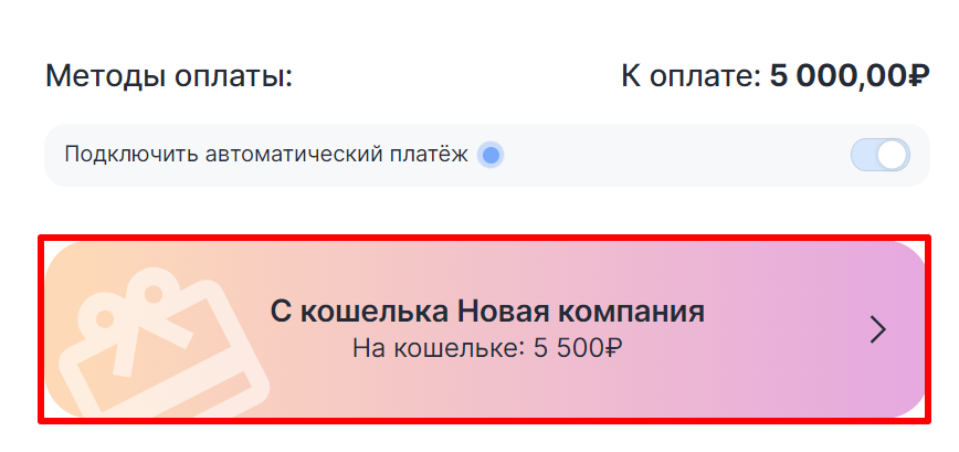 12. Выберите способ оплаты «С кошелька (название компании)».