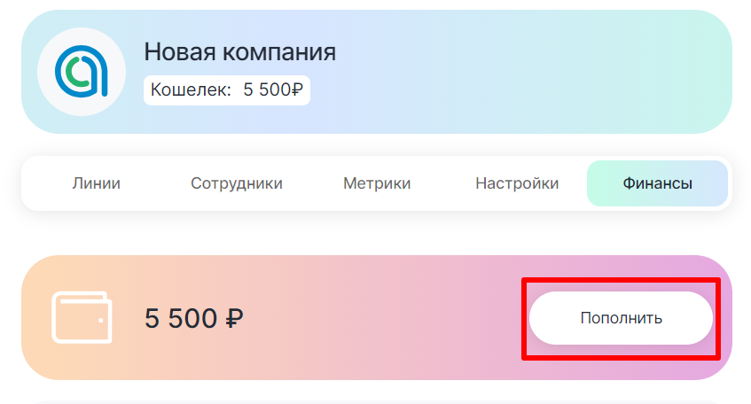 За пополнение кошелька компании не выдаются закрывающие документы. После оплаты линии по счету, картой или с кошелька компании вы можете запросить акт выполненных работ.