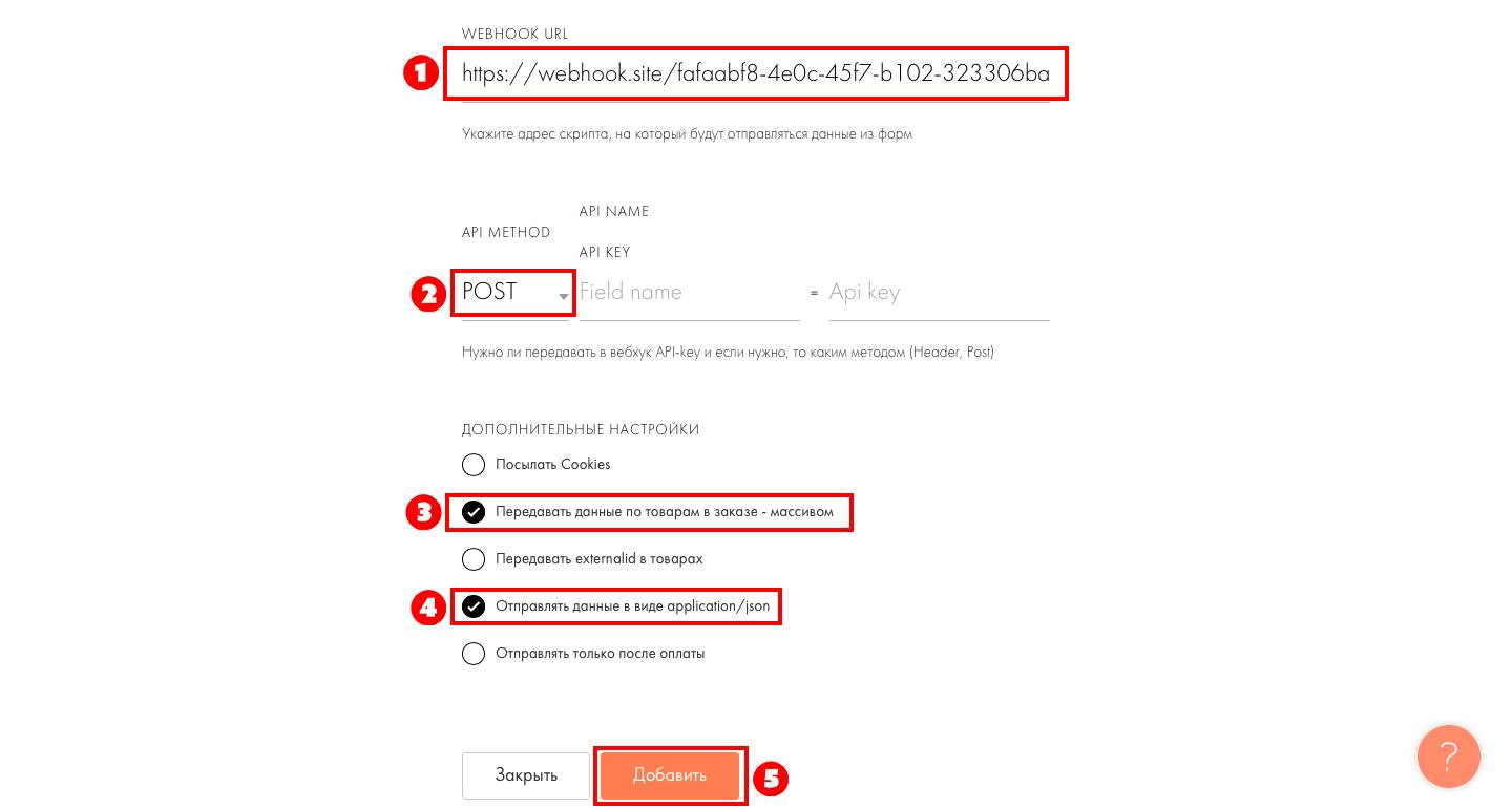 Готово! Вы подключили ваш Webhook к Tilda.