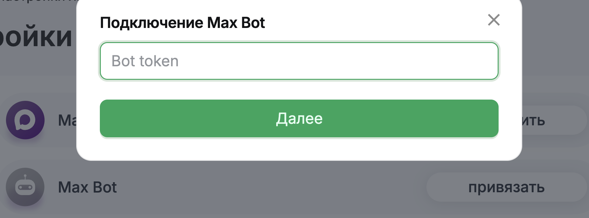 Для подключения к ChatApp потребуется токен MAX Bot.