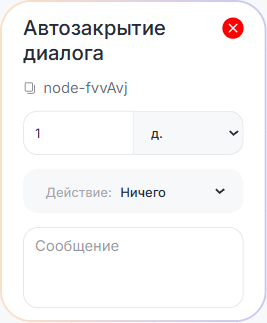 В редакторе сценариев есть два блока, которые закрывают диалог. Они необходимы, чтобы бот менял статус диалога в Scenario Dialogs с «Открыт» на «Закрыт» по команде или автоматически. Блок «Автозакрытие диалога» перезапускает сценарий заново, чтобы сценарии не зависали при повторном обращении клиента.| Важно: если бот открыл диалог, закрыть его вручную кнопкой в Scenario Dialogs нельзя. | |