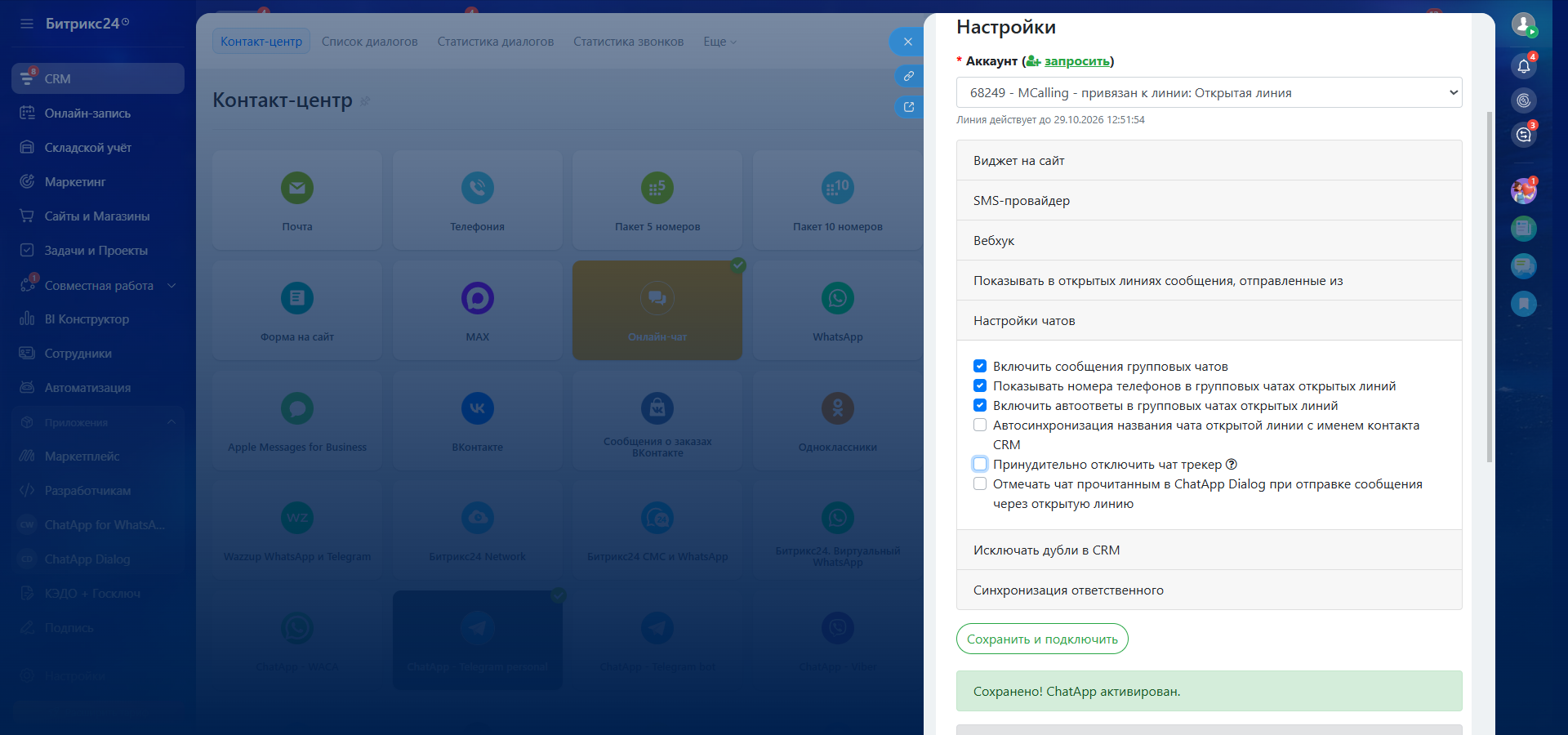 Теперь чат-трекер включен. Когда клиент напишет вам, в открытых линиях появятся системные сообщения.