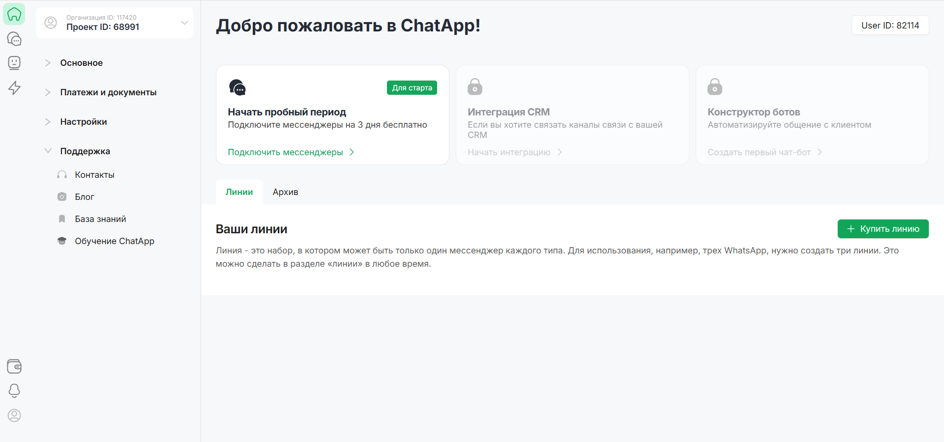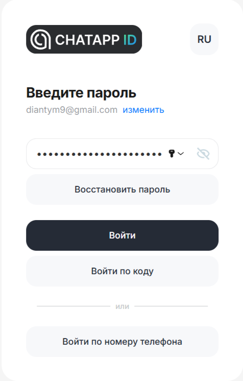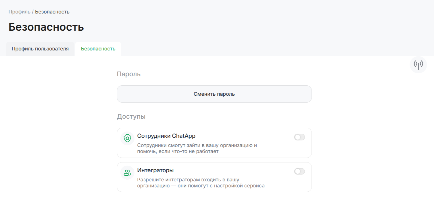 Чтобы Партнер мог иметь доступ к Личному кабинету своего клиента, клиент должен предоставить ему такой доступ. Как это сделать? Действия клиента: 1. Войдите в Личный кабинет ChatApp, введя свой логин и пароль.