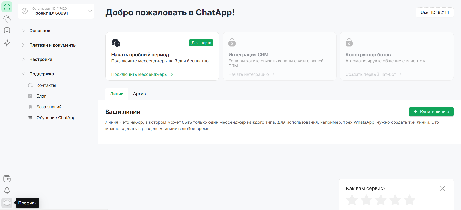 2. В Личном кабинете войдите в Профиль пользователя в левом сайдбаре страницы, нажав на значок "Профиль".