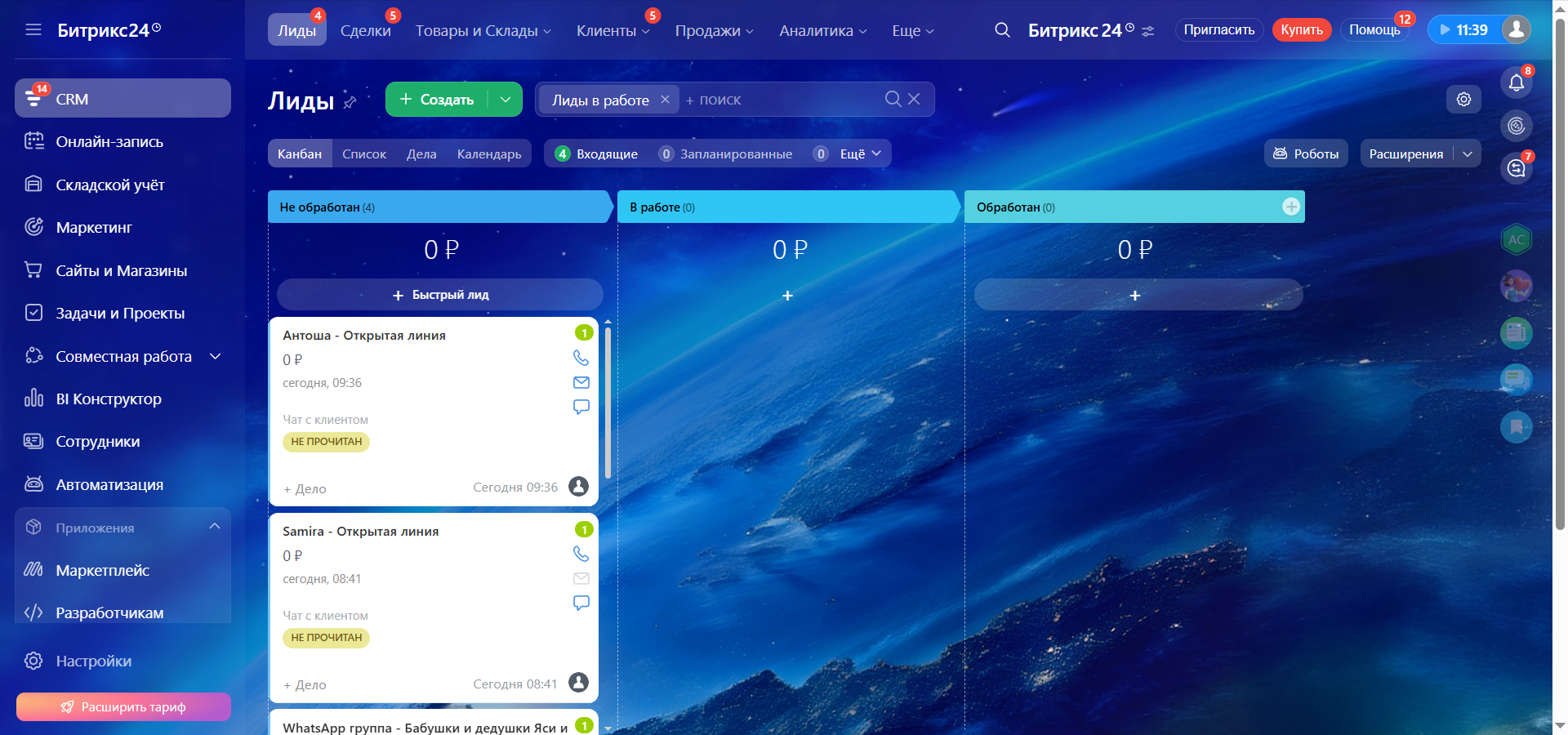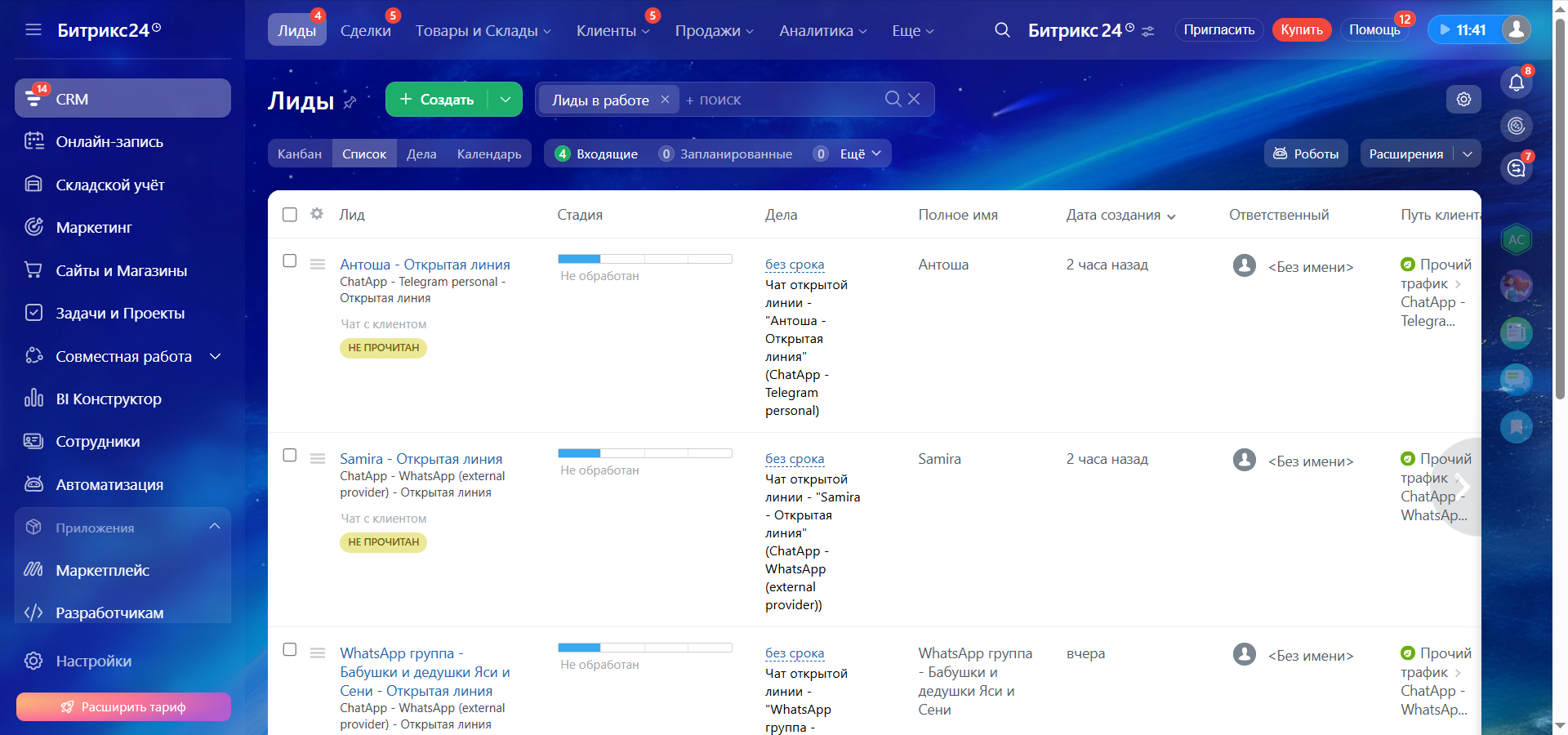 1. Перейдите в платформу Битрикс24 и откройте “Лиды”.