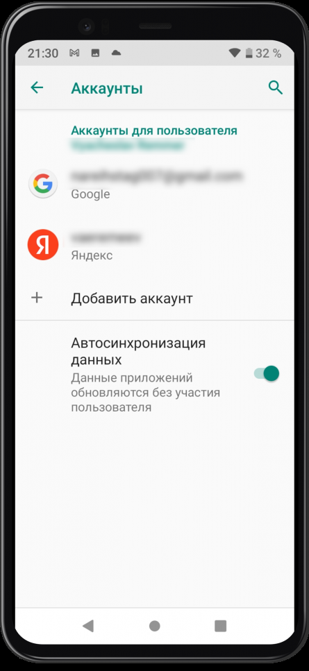 1. В настройках телефона выберите пункт Аккаунты – в зависимости от модели, он может называться: Аккаунты, Учетные записи и т.п.