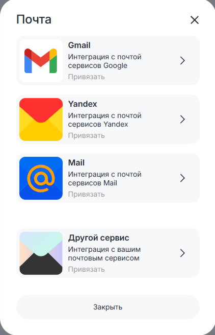 2. Выберите из списка, какой почтовый сервис вы подключаете.