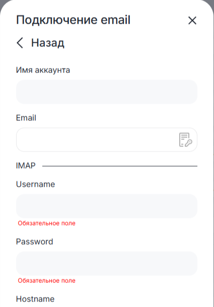 . Данные «Hostname» и «Port» заполнятся автоматически.b) В поле «Username» введите почту.