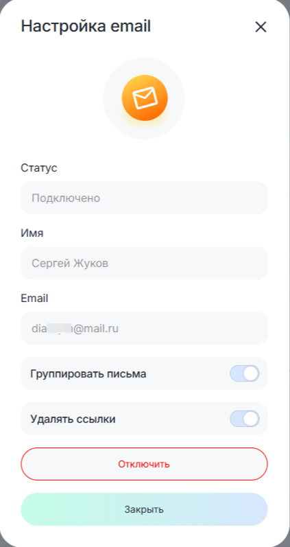 4. После небольшой загрузки нажмите «Подключить». В настройках линии отобразится, что канал Email подключен.