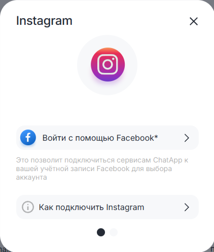 2. В открывшейся форме вы можете ознакомиться с инструкцией, нажав на поле "Как подключить Instagram".
