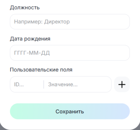 - Сотрудник — выберите из списка (отображается максимум 500 сотрудников). Чтобы добавить сотрудника вручную, впишите его ID из CRM системы;