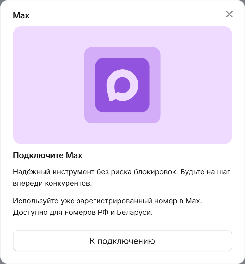 Мессенджер Max является популярным каналом коммуникации, и его подключение к ChatApp позволит вам централизовать общение с клиентами, автоматизировать ответы, использовать чат-боты и анализировать статистику в единой системе. Работа с мессенджером доступна для номеров России и Беларуси.