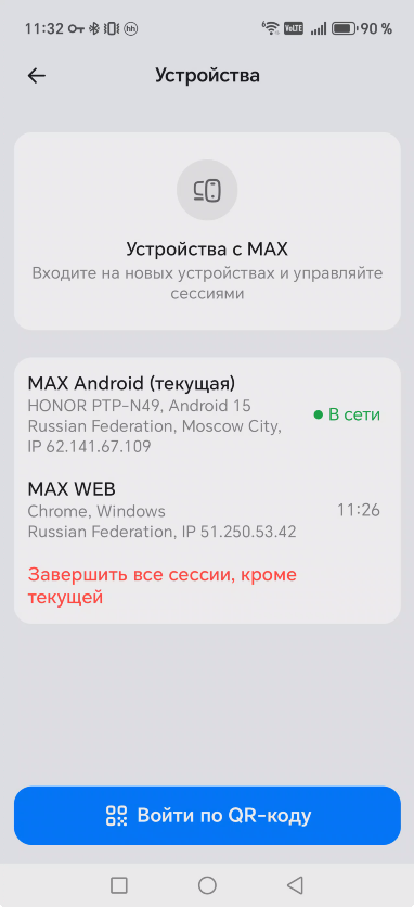 3. Подключите канал с помощью QR-кода на экране компьютера в приложении Max на мобильном устройстве:
