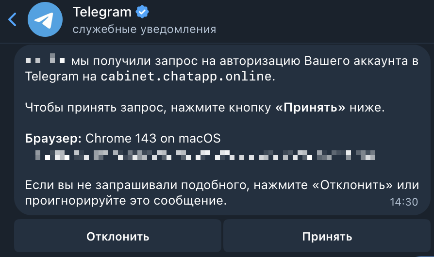 Шаг 4. В Telegram вы получите сообщение с запросом на авторизацию — подтвердите его.