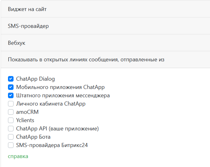 - SMS-провайдер — использование данной открытой линии и мессенджера для рассылки в Битрикс24 с помощью ChatApp.