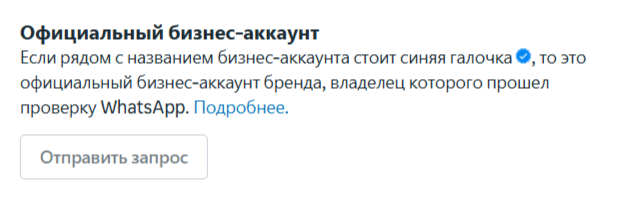 Официальный бизнес-аккаунт ("OBA") — это бизнес-номер телефона, принадлежащий компании, которая была подтверждена как подлинный и известный бренд в соответствии с определёнными критериями. Рядом с названием официального бизнес-аккаунта в списке контактов отображается синяя галочка. Вы можете запросить статус OBA для корпоративного номера телефона с помощью WhatsApp Manager или API. После того как Facebook* рассмотрим ваш запрос, вы получите уведомление о том, присвоен ли вашему корпоративному номеру статус OBA. Если ваш запрос отклонен, вы можете отправить новый запрос через 30 дней. Чтобы иметь право на участие в программе OBA, необходимо соответствовать следующим критериям: