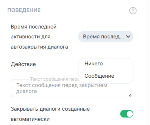 - Автозакрытие диалога -- по каким правилам бот автоматически закроет диалог:
