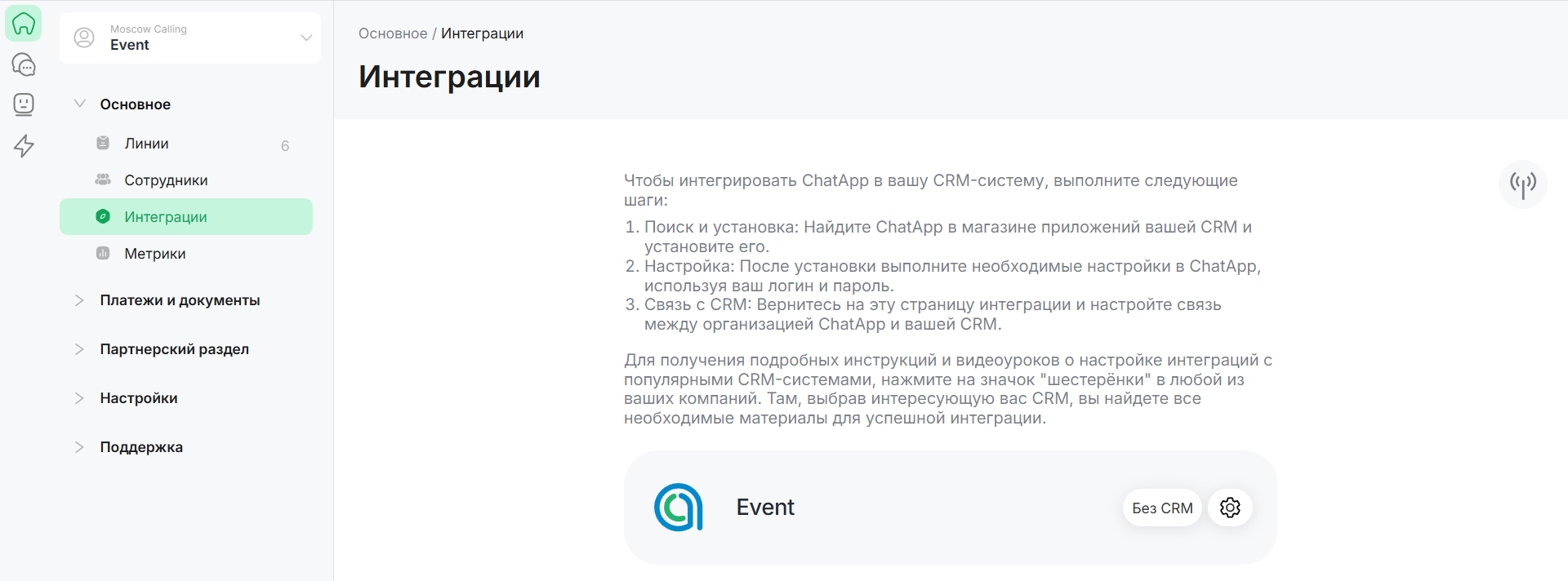 Подключите CRM к ChatApp для работы из единого окна и импорта сотрудников. Подключение создает связь между системой и CRM, а именно: