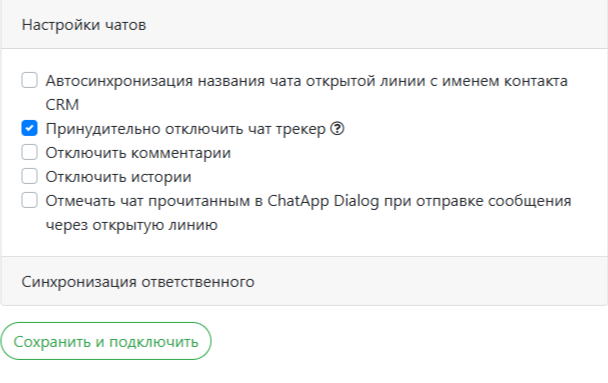 - Синхронизация ответственного — синхронизация ответственных между ChatApp и Битрикс24.
