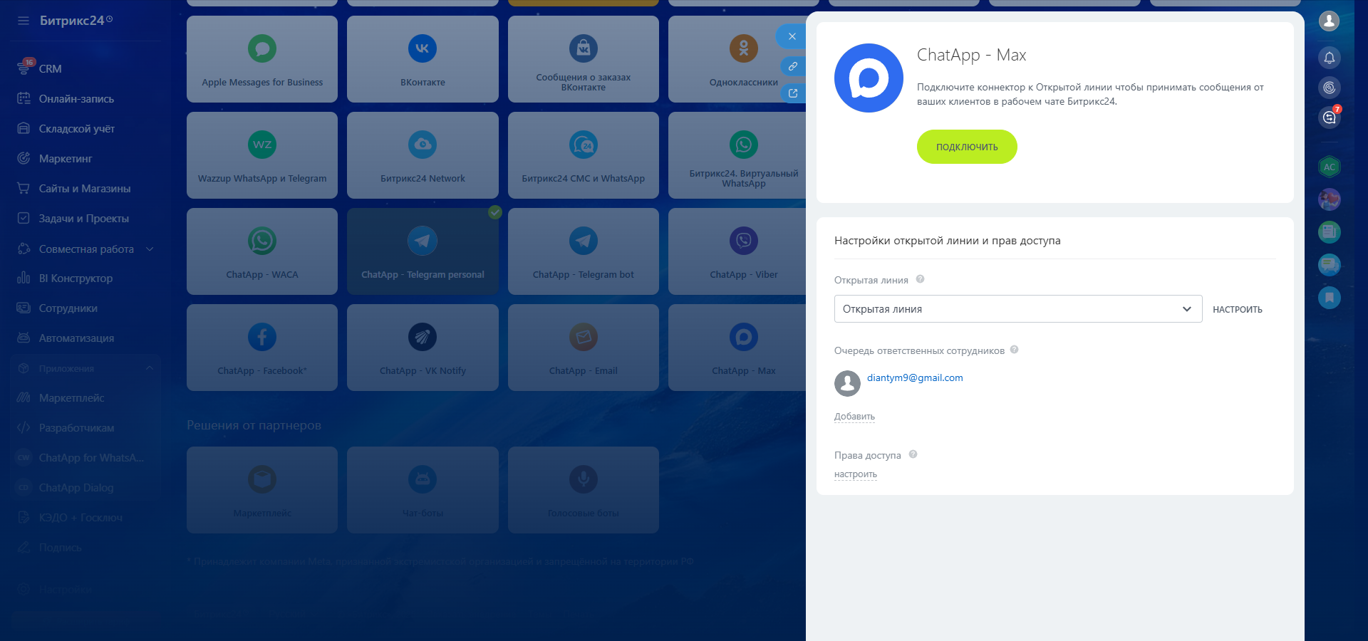 Чтобы оставаться на связи с клиентами в Открытых линиях Битрикс24, подключите коннектор ChatApp – Max.