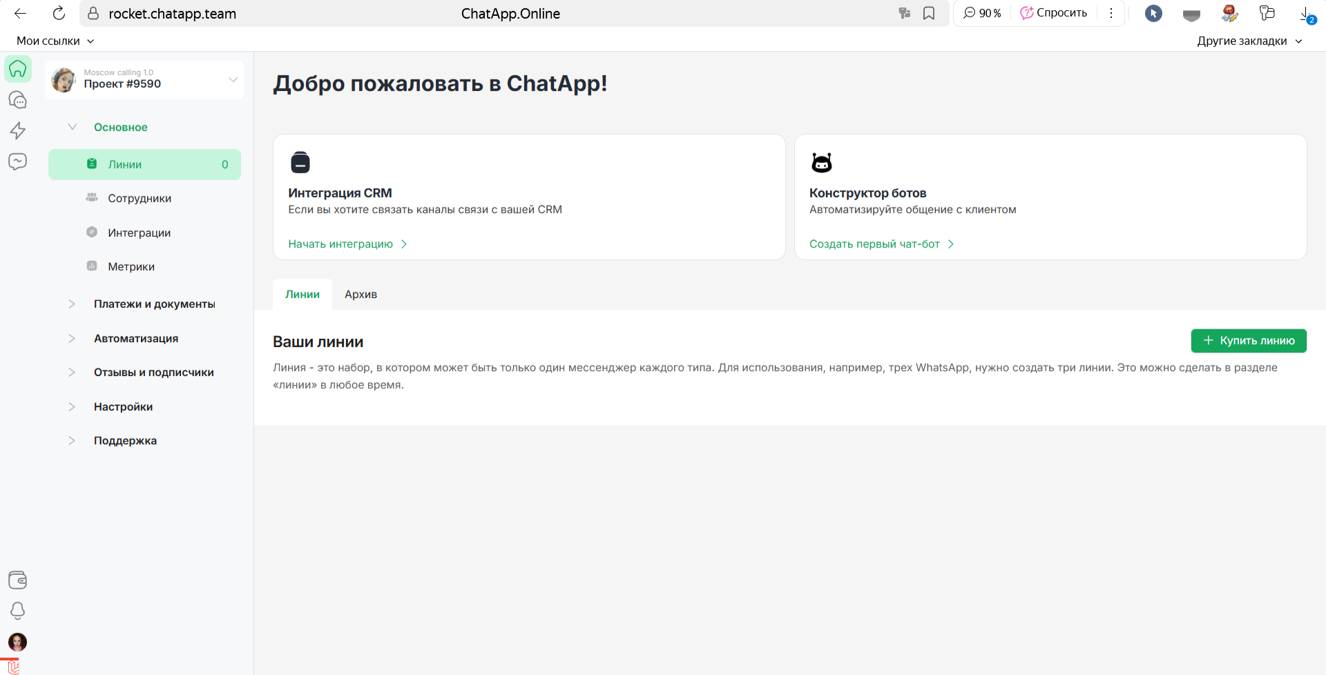 2. Нажмите на кнопку «+ Купить линию» в разделе "Линии".