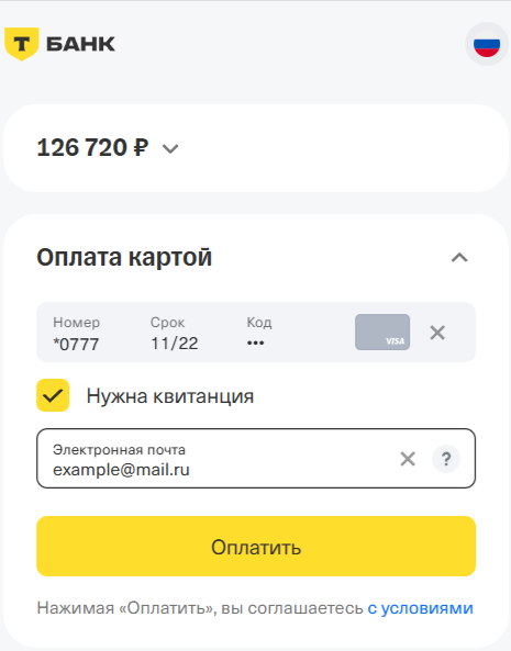2. Нажмите кнопку «Оплатить». Открывается форма ввода данных в платежной системе банка.