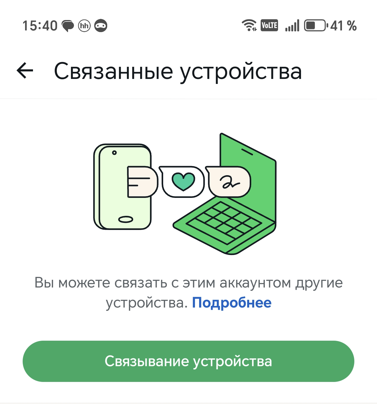 • Android – нажмите на три точки в правом верхнем углу экрана — «Связанные устройства» — «Связывание устройства».