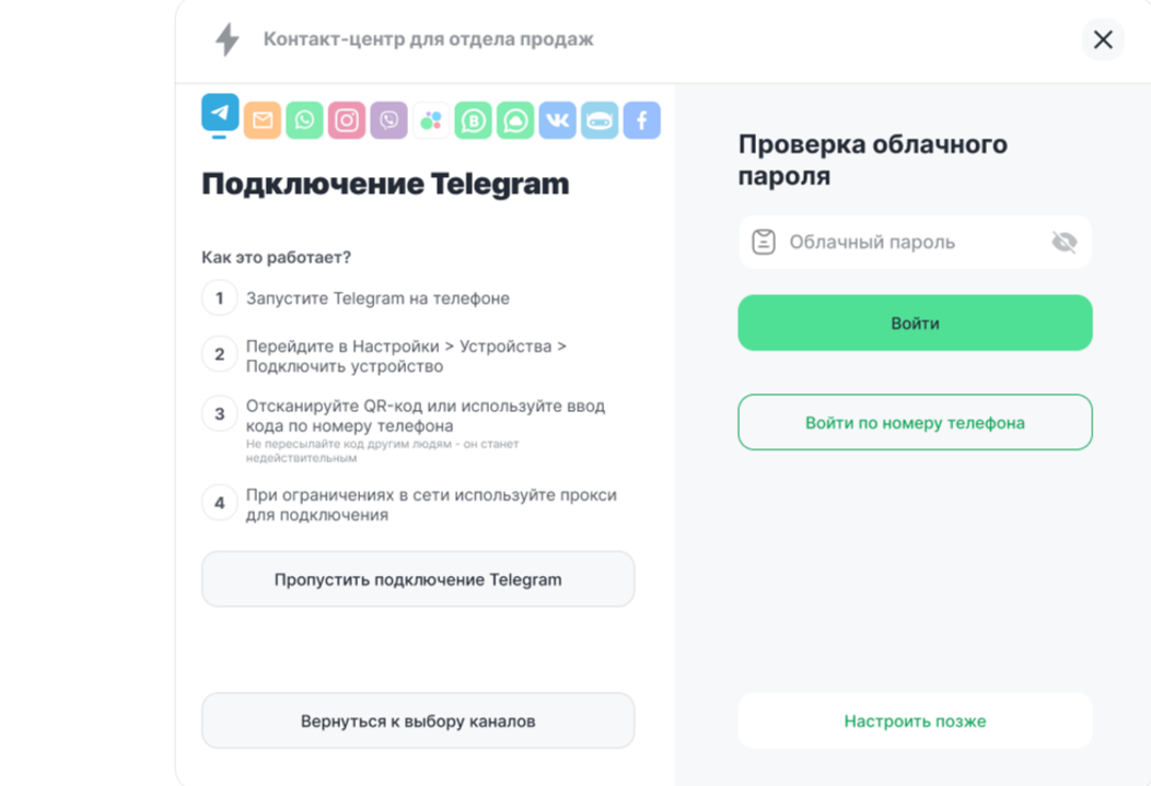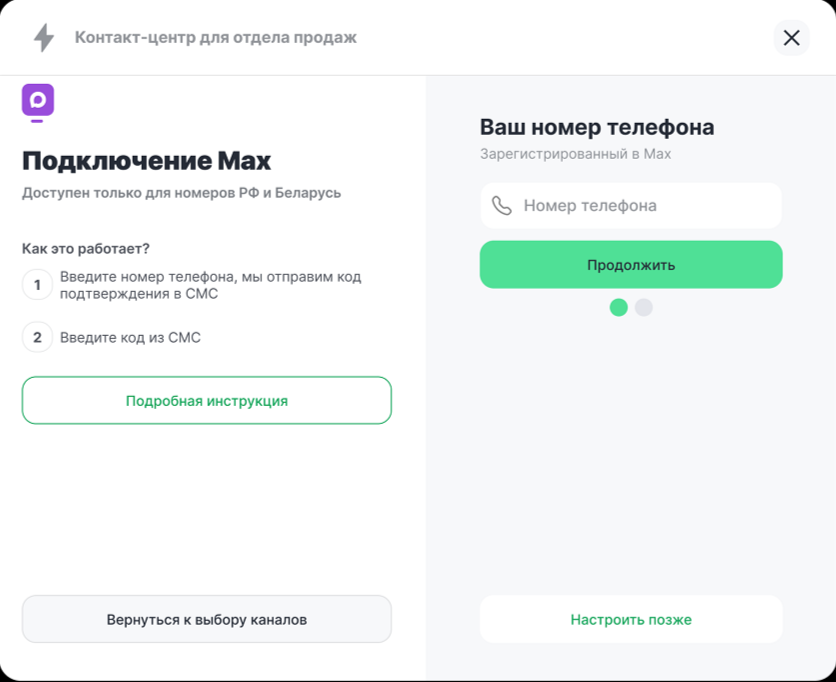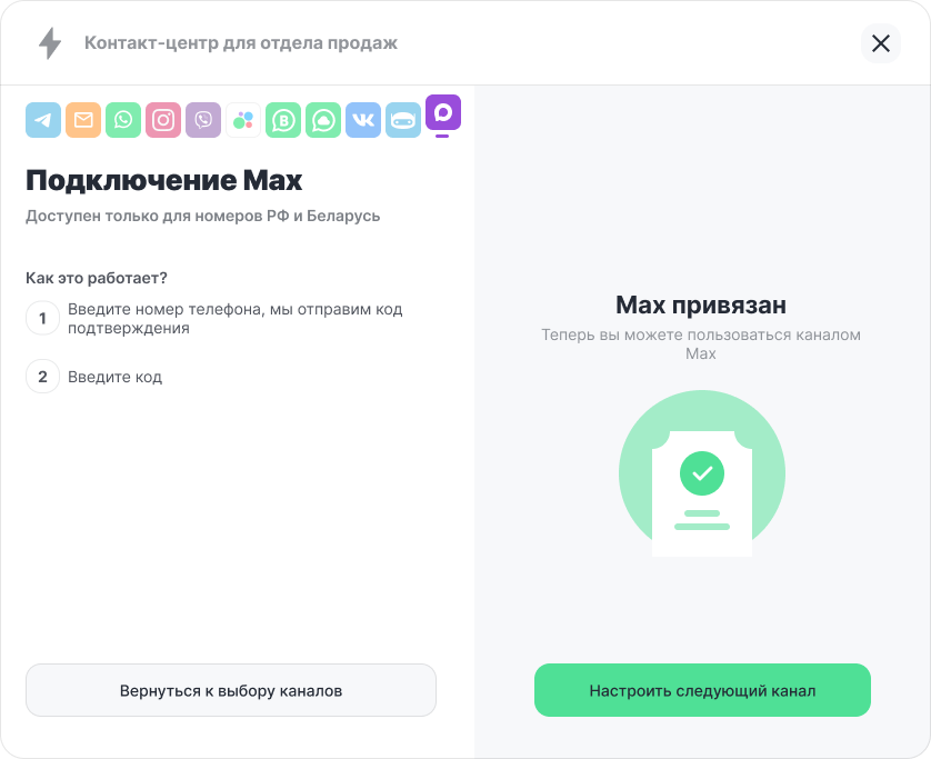 Мессенджер Max система предложит настроить с подробной инструкцией.