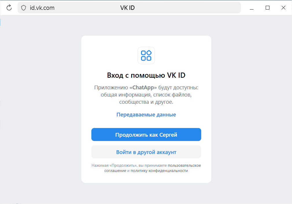 2). Откроется форма, в которой подтвердите текущий аккаунт или выберите другой.