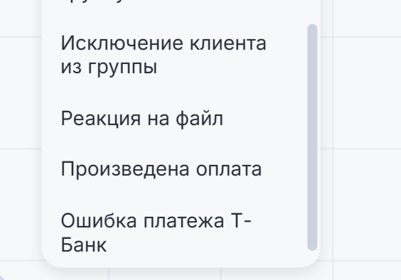 - Ошибка платежа Т-Банк — реагирует на получение сообщения об ошибке оплаты по кассе Т-Банка.