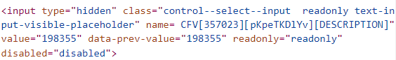 3. В окне отобразится код поля. Id находится в квадратных скобках после «CFV».