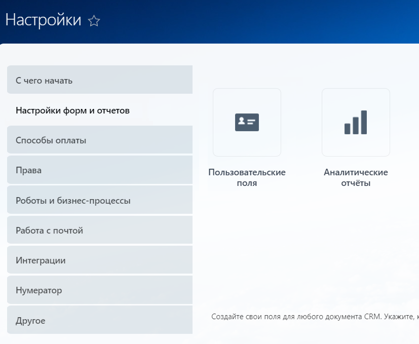 2. Выберите вкладку «Настройка форм и отчетов» — «Пользовательские поля».