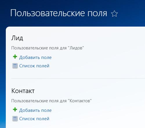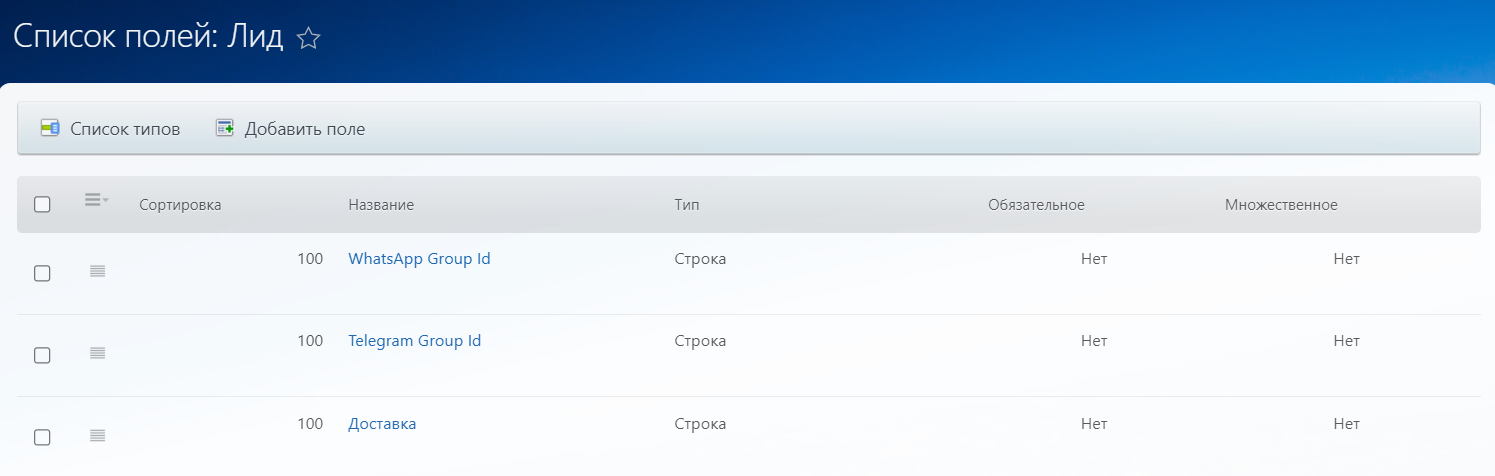 | Важно: для пользовательских полей поддерживаются только строковые не множественные поля. | |