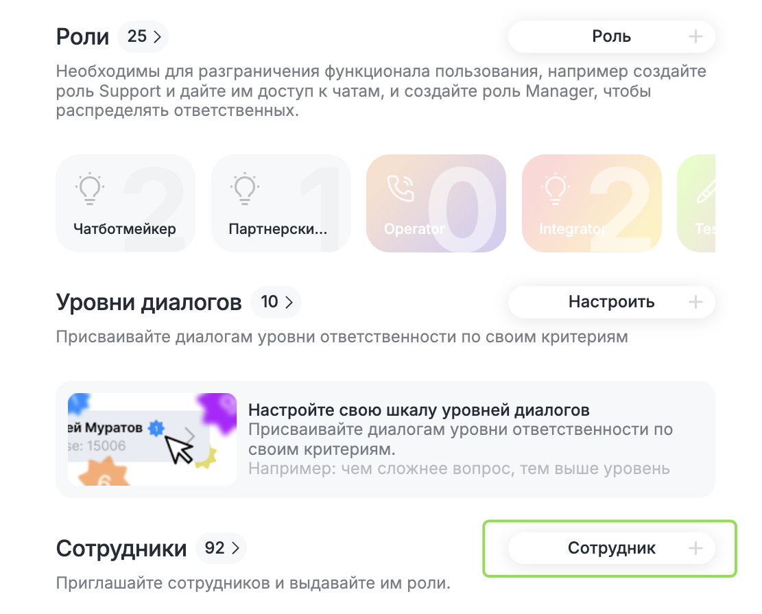 Шаг 1. Перейдите в Основное → Сотрудники и нажмите «Роль +».