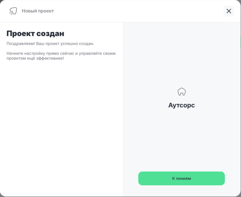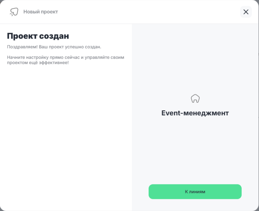 Проект создан, и система предложит перейти к созданию и настройке линий в созданном Проекте.
