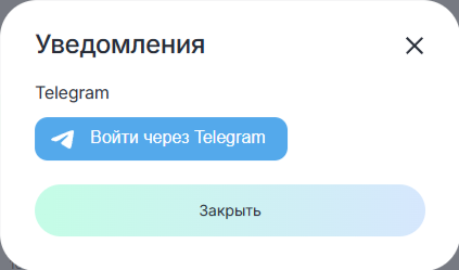 b) Нажмите на кнопку «Войти через Telegram», чтобы использовать свой аккаунт для получения уведомлений.