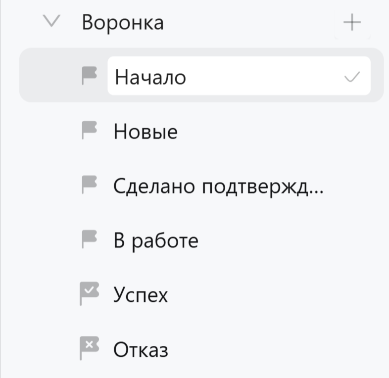 a). Переименовать стадию - для сохранения изменений нажмите иконку справа или клавишу Enter.