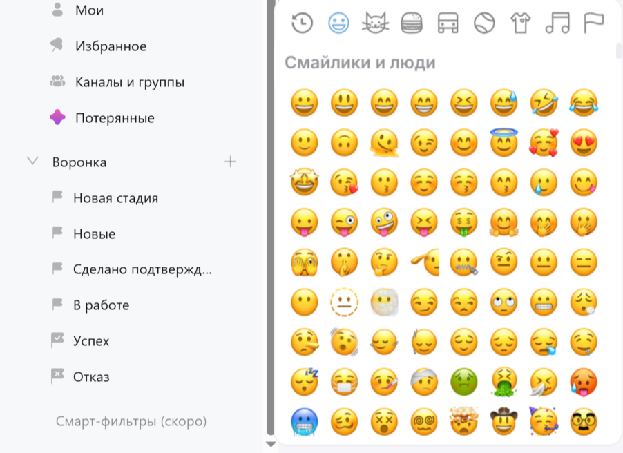 b). Изменить иконку - выберите иконку из панели смайликов.