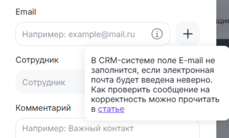- Комментарий — добавьте комментарий к контакту по желанию;