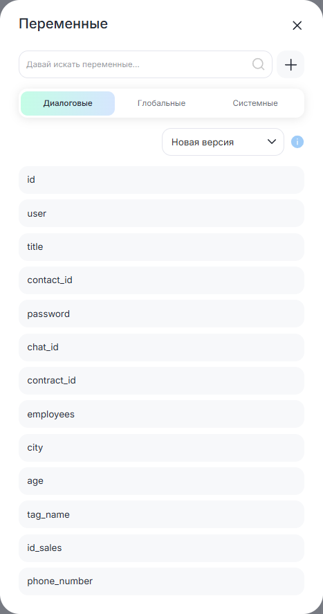 2. Создайте диалоговую переменную для каждого поля. Подробнее о создании переменных читайте в статье "Переменные и константы".