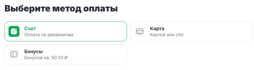 - Выберите метод «Счёт».