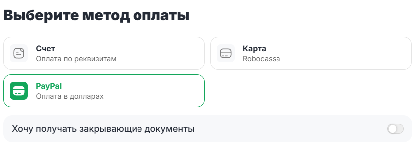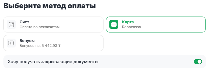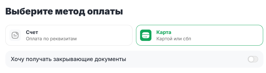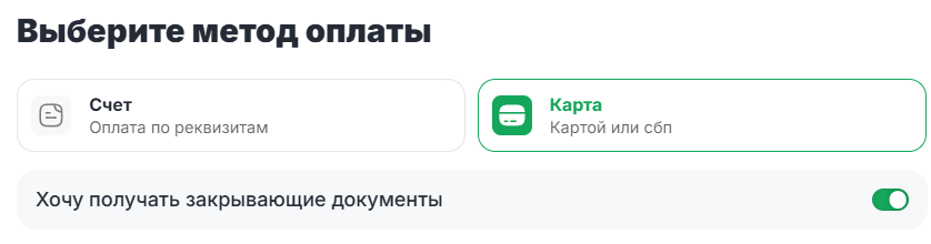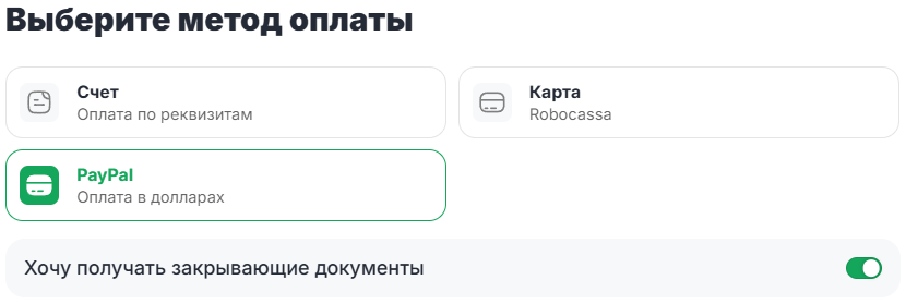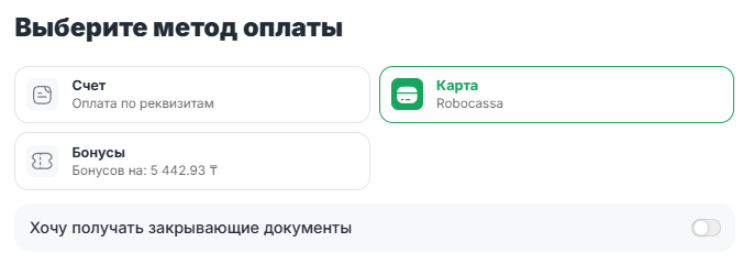 Включите тумблер «Хочу получать закрывающие документы».